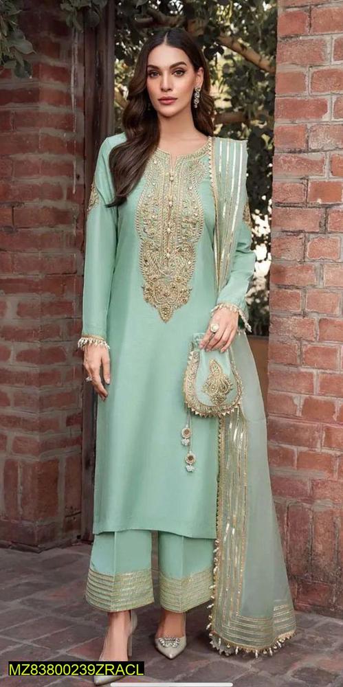 Package Includes: 1 x Shirt, 1 x Trouser, 1 x Dupatta, 1 x Khussa, 1 x Clutch